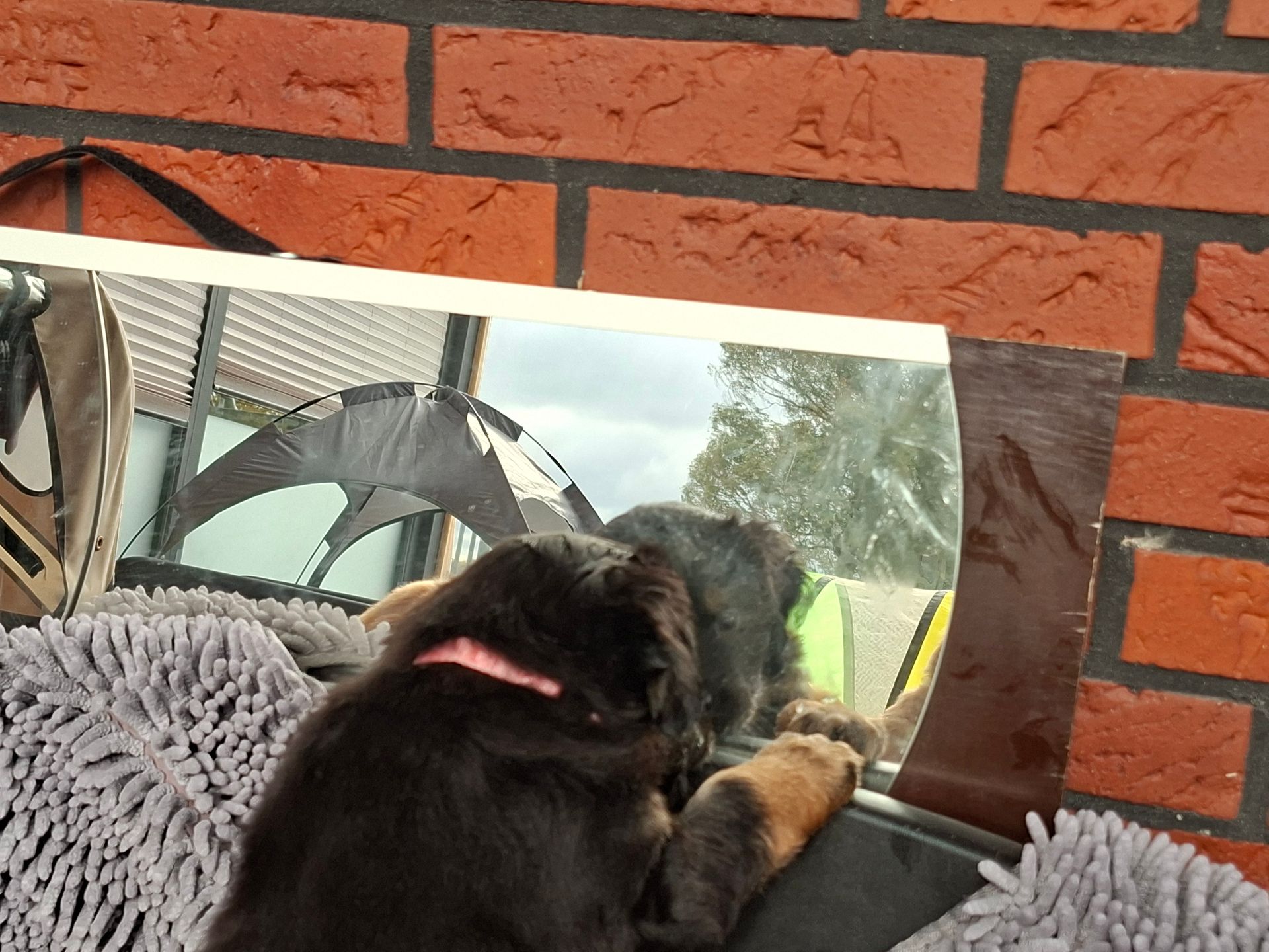 Die erste Wahl auf dem Deckschein, Eyco vom Mühlendamm, hat sich während unseres Aufenthaltes leider an der Pfote verletzt, sodass er seinen Einsatz nicht fortsetzten konnte und wir abbrechen mussten. Darüber waren alle sehr traurig. Wir wünschen ihm an dieser Stelle gute Besserung und hoffen, dass er schnell wieder fit wird. Ein herzliches Dankeschön geht an Bernhard und Heidi für die hervorragende Gastfreundschaft und Hilfe vor Ort. Ebenso danken wir Ilja von Erasto, der kurzfristig alles einrichten konnte und so den Deckakt ermöglichte. Wir bedanken uns auch bei allen, die für uns die Daumen gedrückt und an uns gedacht haben. Wenn ihr die Daumen noch länger gedrückt halten möchtet, kommen vielleicht schon bald wieder kleine Ostenholzer zu Welt.
